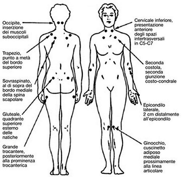 La palpazione dei 18 tender points, nel soggetto sano non procura dolore, mentre nel malato fibromialgico risulta dolorosa in numero non inferiore ad 11.